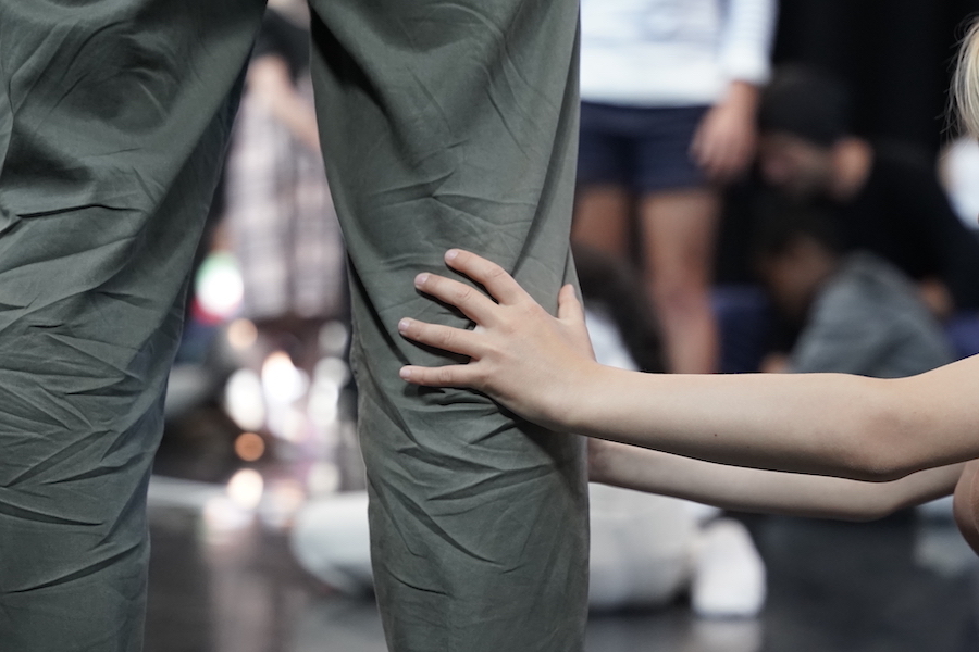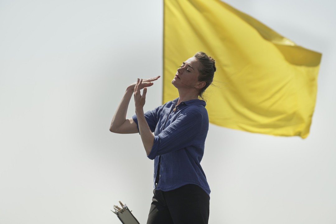 Tel un polar, A Posto est construit comme un film dont les scènes, étranges et mystérieuses, se recombinent sans cesse, avec « une intelligence diabolique ». Trois femmes rentrent et sortent de scène, leurs regards explorent la salle à la recherche d’un corps, d’une silhouette, d’un objet. Tout semble leur échapper, leurs gestes, les objets qui se dérobent, roulent ou coulent. Ce charmant tableau champêtre plein de fraîcheur joue sans cesse entre la fiction et la réalité pour donner à voir un ballet léger, fluide et malicieux qui, subrepticement, glisse par petites touches vers un scénario plus décalé. Le trio se disloque doucement jusqu’à l’absurde.